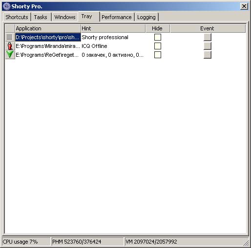 Галочка в поле Hide позволяет скрывать и показывать иконку, а кнопка Event задавать иконку, появление которой влечет за собой показ скрытой иконки.