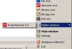 The hidden window can be restored from Shortys menu (right click on tray icon / Hidden windows).
