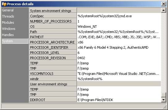 4. In Process details (Tasks page / Popup menu / Process details / System)