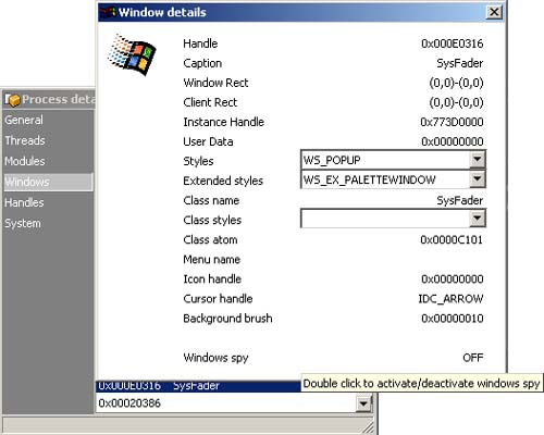 9. To use Windows spy double click on the OFF label (right bottom) in the Windows details window